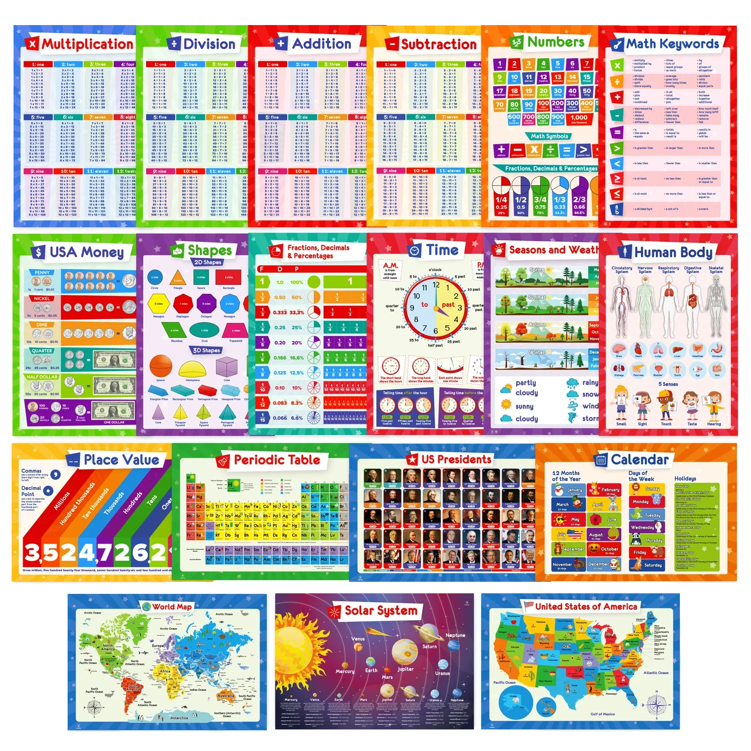 Educational Placemats Set - USA and World Maps, Periodic Table, Presidents, Human Body